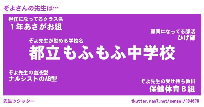 | ヘコむあだ名 | 『ぞよにゅー』『牛乳』『ぞよお』 |