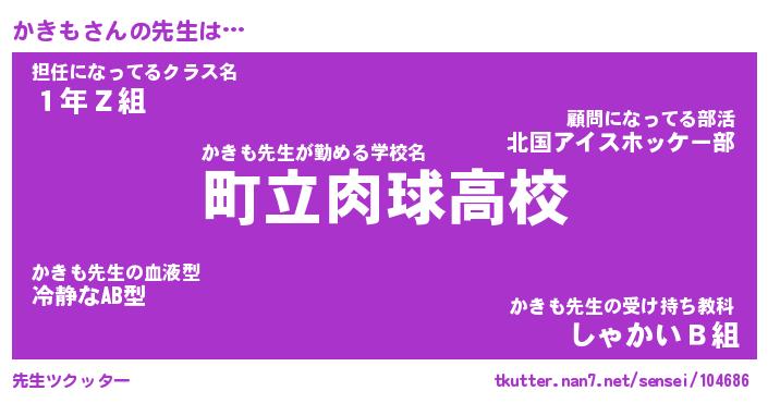 | ヒーロー風カッコイイあだ名 | 『スーパーカキモ』『ウルトラかきもマン』 |