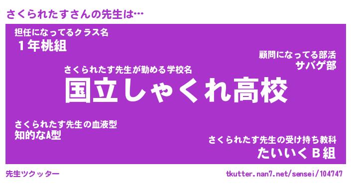 | 男性向けラノベタイトル風あだ名 | 『さくられたすの憂鬱』 |