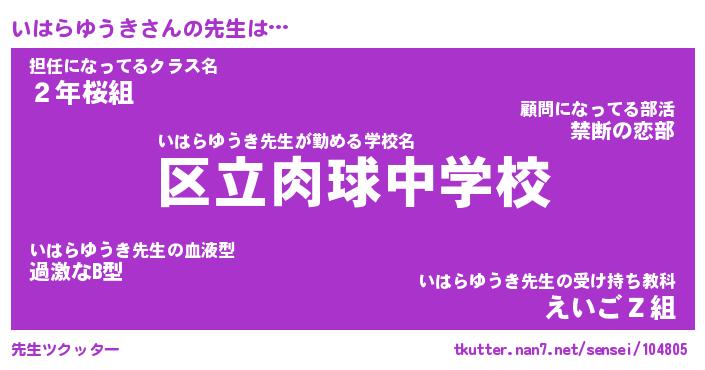 | ポケモン風あだ名 | 『イハチュウ』『イハラダネ』 |