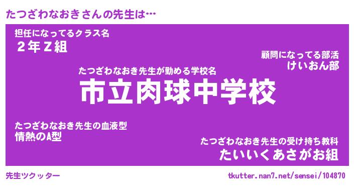 | ポケモン風あだ名 | 『タツチュウ』『タツザダネ』 |