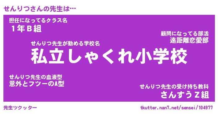 | 意味不明あだ名 | 『ペロリンせんりつ』『永久保存せんりつ』 |