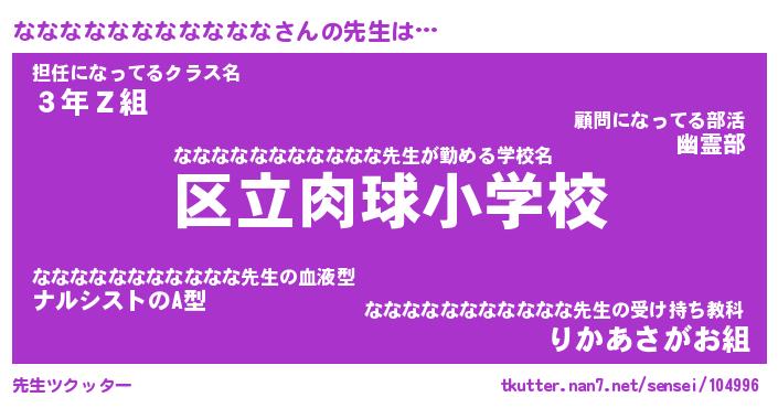 | 胡散臭い通販商品みたいなあだ名 | 『億万長者になれるブレスレット…その名も「ななななななななななな」』 |