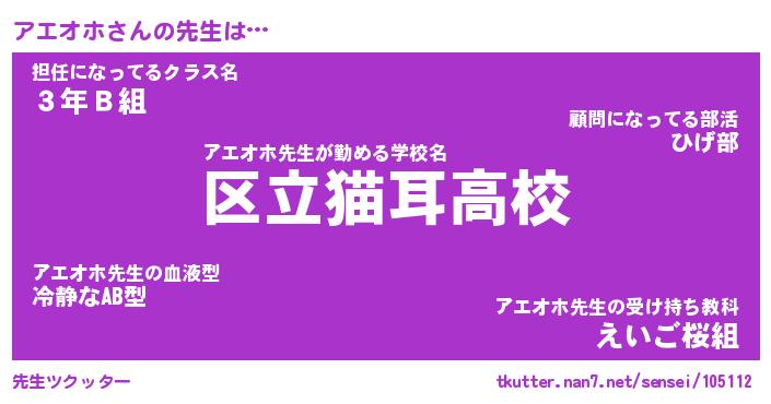 | ヘコむあだ名 | 『アエにー』『酢こんぶ』『アエ太郎』 |