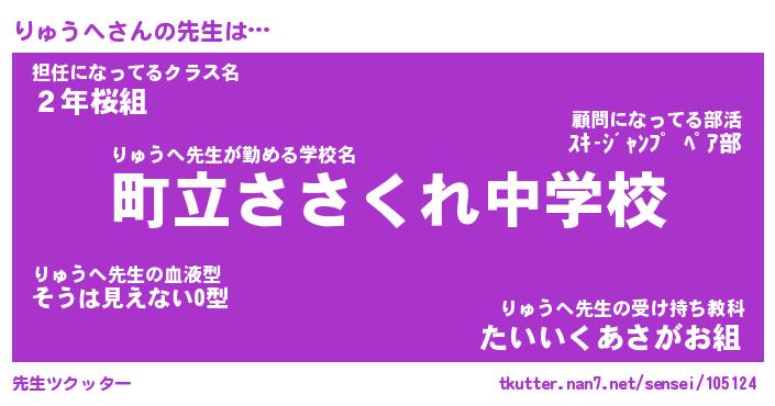 | 意味不明あだ名 | 『ペロリンりゅうへ』『永久保存りゅうへ』 |