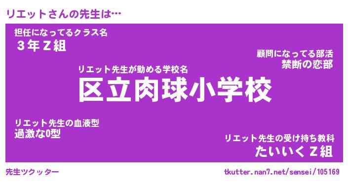 | 意味不明あだ名 | 『ペロリンリエット』『永久保存リエット』 |