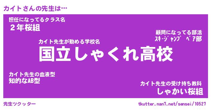 | 肩書あだ名 | 『カイト御曹司』『カイト国家主席』 |