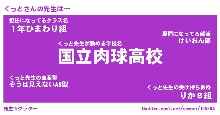 | 意味不明あだ名 | 『ペロリンくっと』『くっとフォーエバー』 |
