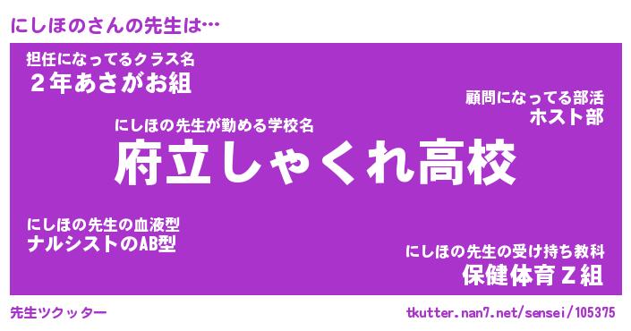 | ファンタジー風あだ名 | 『ニシフェル』『エターナルニシホノー』 |