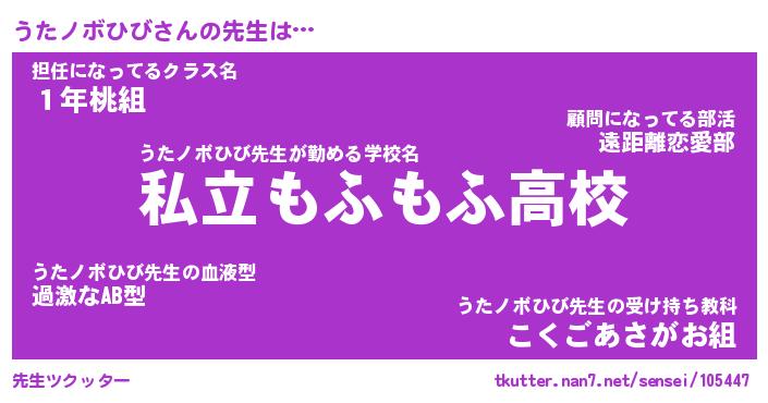 | 肩書あだ名 | 『うたノボひび店長』『うたノボひび塾長』 |