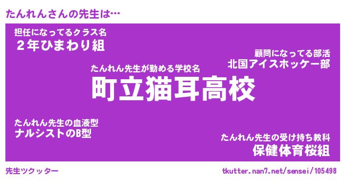 | ファンタジー風あだ名 | 『タンフェル』『エターナルタンレンー』 |