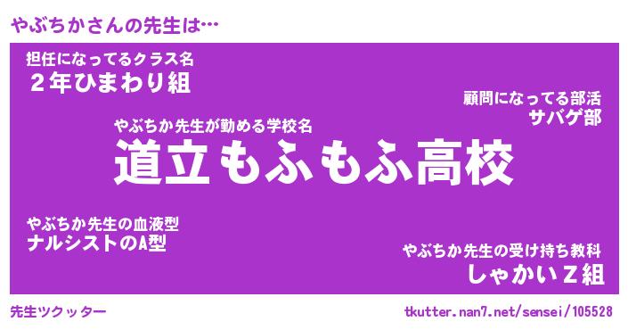 | ファンタジー風あだ名 | 『ヤブフェル』『エターナルヤブチカー』 |