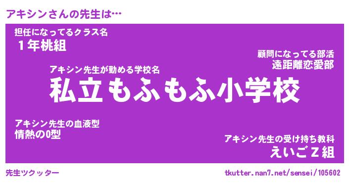 | ピコ太郎風あだ名 | 『アコ四郎』『ピア十郎』『アキ三郎』 |
