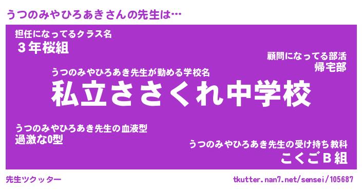| 伝説のあだ名 | 『伝説のスナイパーうつのみやひろあき』 |