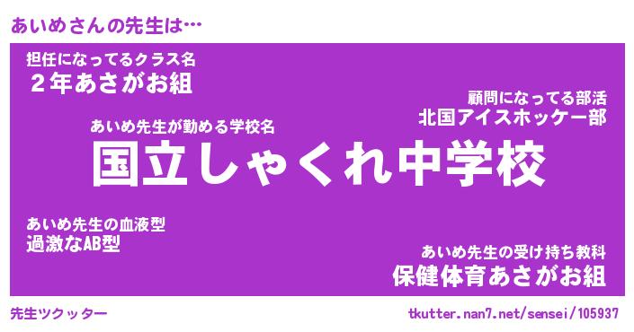 | 伝説のあだ名 | 『伝説のスナイパーあいめ』 |