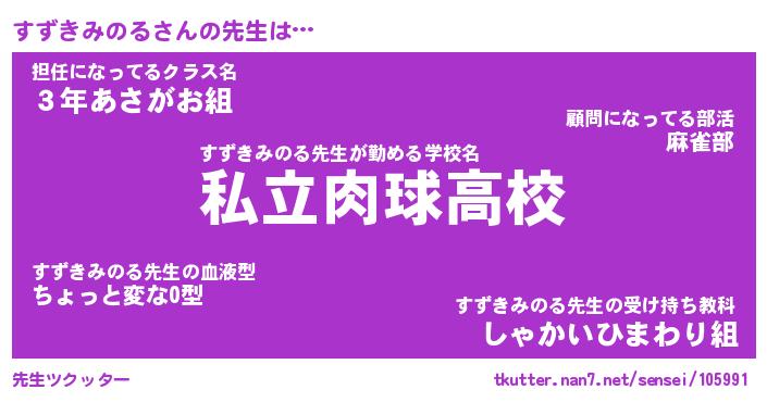 | ヒーロー風カッコイイあだ名 | 『スーパースズキミノル』『魔戒騎士スズ』 |