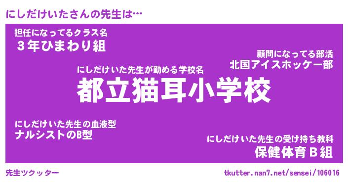 | ヘコむあだ名 | 『にしにー』『つくし』『にしぷりん』 |