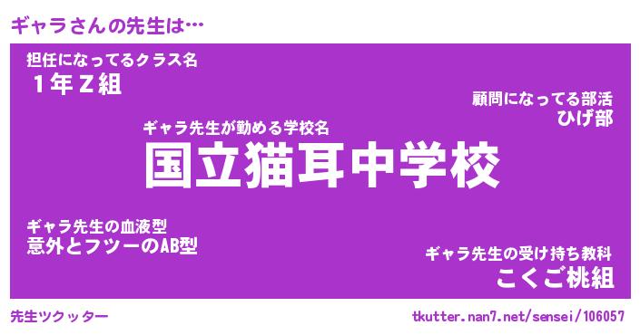 | ファンタジー風あだ名 | 『ギャフェル』『エターナルギャラー』 |
