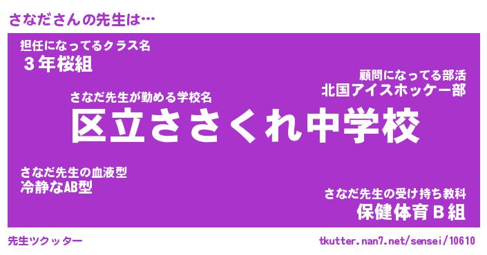 | 意味不明あだ名 | 『ペロリンさなだ』『さなだフォーエバー』 |