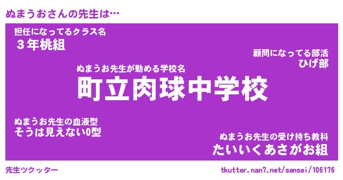 | 意味不明あだ名 | 『ペロリンぬまうお』『永久保存ぬまうお』 |