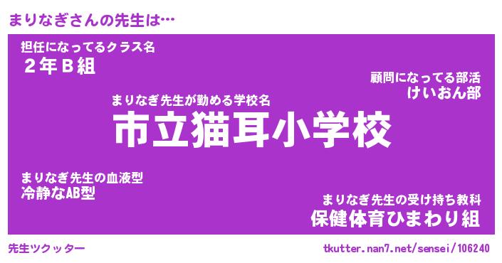 | 意味不明あだ名 | 『ペロリンまりなぎ』『永久保存まりなぎ』 |