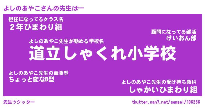 | ヒーロー風カッコイイあだ名 | 『スーパーヨシノアヤコ』『魔戒騎士ヨシ』 |
