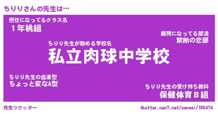 | ヘコむあだ名 | 『ちりふぇ~』『牛乳』『ちりお』 |