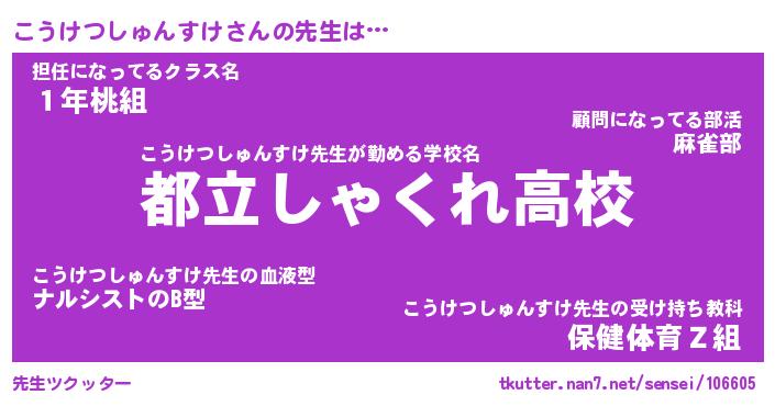 | 肩書あだ名 | 『こうけつしゅんすけ御曹司』 |
