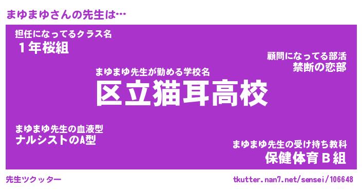 | ファンタジー風あだ名 | 『マユフェル』『エターナルマユマユー』 |