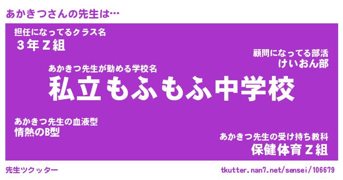 | 意味不明あだ名 | 『ペロリンあかきつ』『永久保存あかきつ』 |