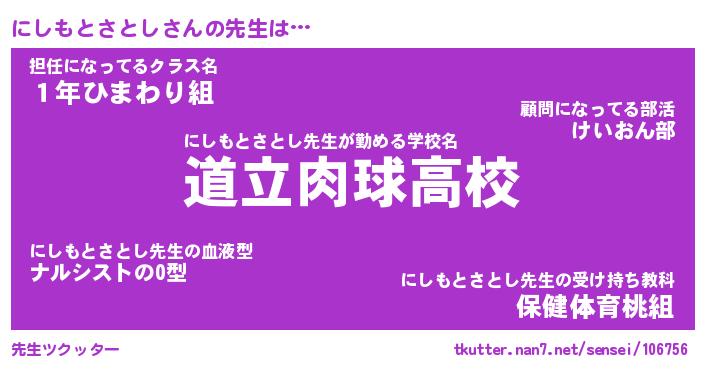 | ポケモン風あだ名 | 『ニシチュウ』『ニシモダネ』 |