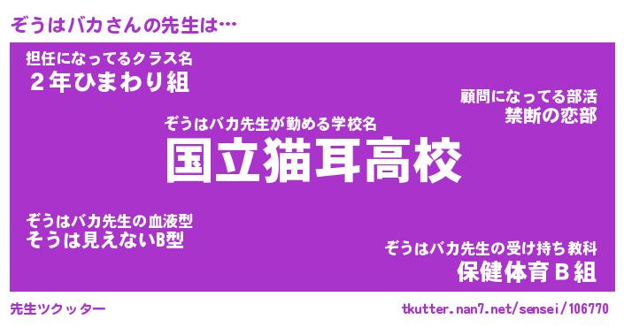 | ヘコむあだ名 | 『ぞうにー』『なまこ酢』『ぞうお』 |