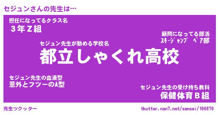 | 意味不明あだ名 | 『ペロリンセジュン』『永久保存セジュン』 |
