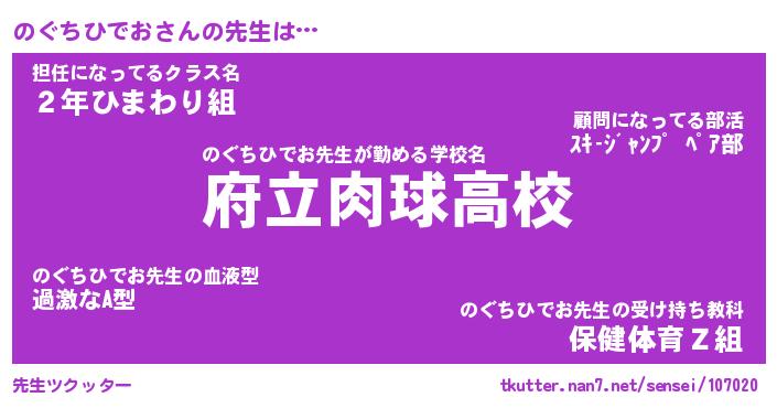| ピコ太郎風あだ名 | 『ノコ一郎』『ピノ一郎』『ノグ一郎』 |