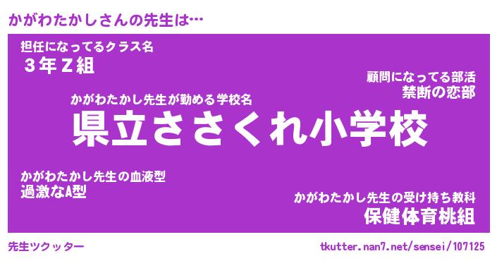 | ヘコむあだ名 | 『かがもー』『つくし』『かがぷりん』 |