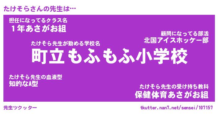 | 意味不明あだ名 | 『ペロリンたけそら』『永久保存たけそら』 |