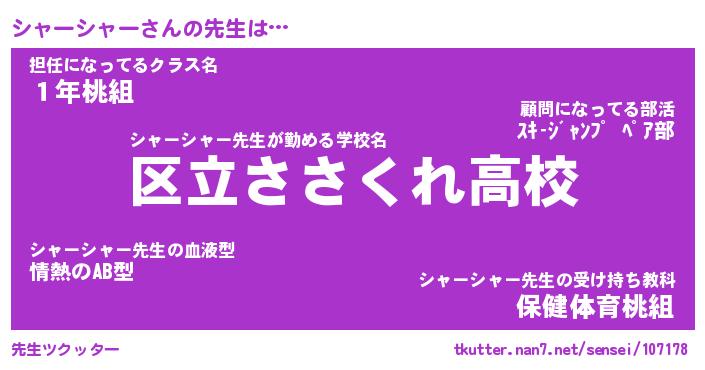 | ヘコむあだ名 | 『シャもー』『牛乳』『シャぷりん』 |