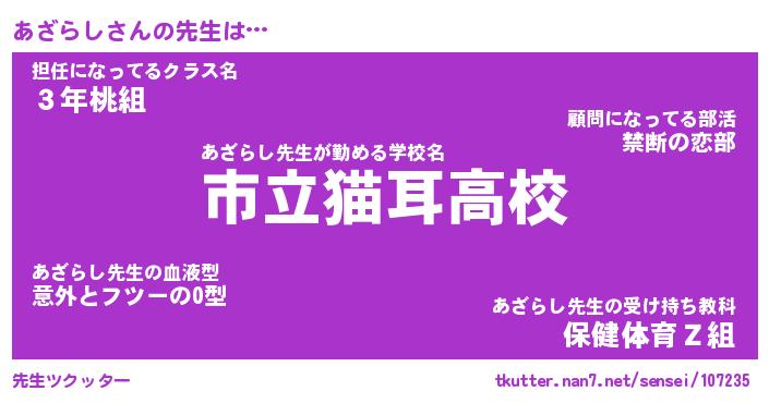 | ポケモン風あだ名 | 『アザチュウ』『アザラダネ』 |