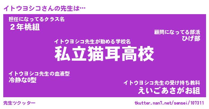 | ヘコむあだ名 | 『イトにー』『なまこ酢』『イトっぺ』 |