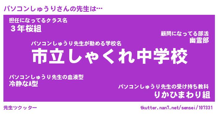 | 伝説のあだ名 | 『伝説のスナイパーパソコンしゅうり』 |