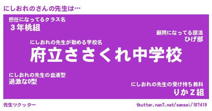 | ポケモン風あだ名 | 『ニシチュウ』『ニシオダネ』 |