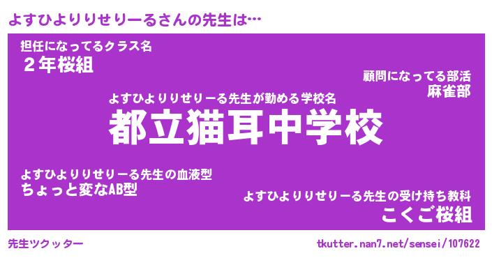 | 学校 | よすひよりりせりーる校長が勤める学校の名前『県立男子ムキムキ小学校』 |