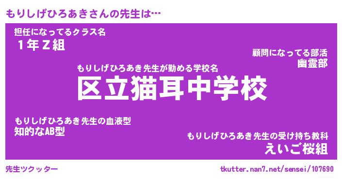 | ヘコむあだ名 | 『もりにー』『つくし』『もりっぺ』 |