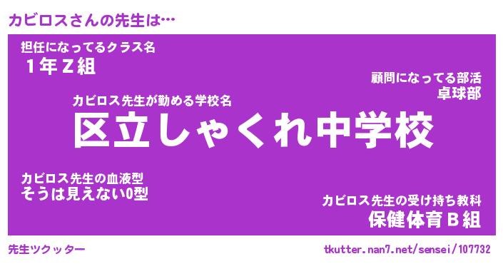 | 意味不明あだ名 | 『ペロリンカビロス』『永久保存カビロス』 |