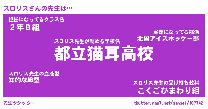 | 肩書あだ名 | 『スロリス社長』『スロリス総理大臣』 |