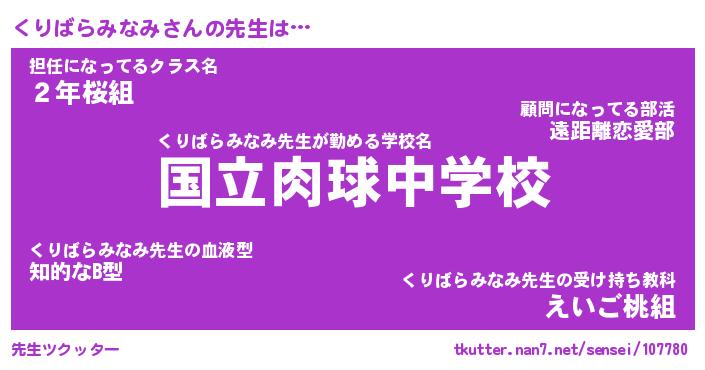 | ヘコむあだ名 | 『くりふぇ~』『牛乳』『くりぷりん』 |