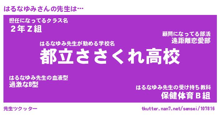 | ファンタジー風あだ名 | 『ハルフェル』『エターナルハルナユミー』 |