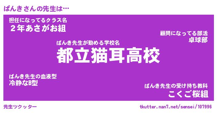 | 意味不明あだ名 | 『ペロリンばんき』『ばんきフォーエバー』 |