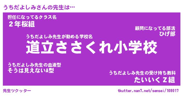| ヘコむあだ名 | 『うちもー』『つくし』『うち太郎』 |