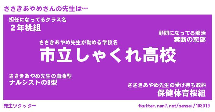 | ヒーロー風カッコイイあだ名 | 『スーパーササキアヤメ』『幻影騎士ササ』 |